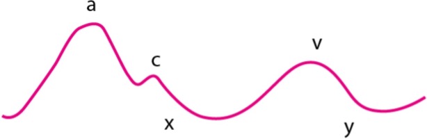Onda v: conhecida como onda de enchimento atrial direito. A chegada do sangue no átrio direito ocasiona um aumento da pressão e leva à formação de uma onda positiva que se localiza próximo à B2. Na presença de ritmo cardíaco normal, ocupa a última fase da sístole ventricular.